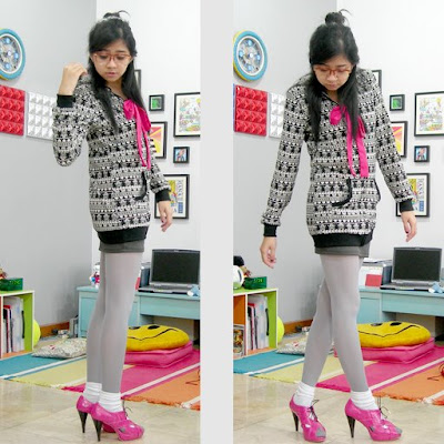 woww.. keren.. tapi gw pernah liat spatu ini d multiply.. orang indonesia yg jual.. tapi kyknya gak ada pink nya.. adanya abu2.. you look cute on those outfit btw..